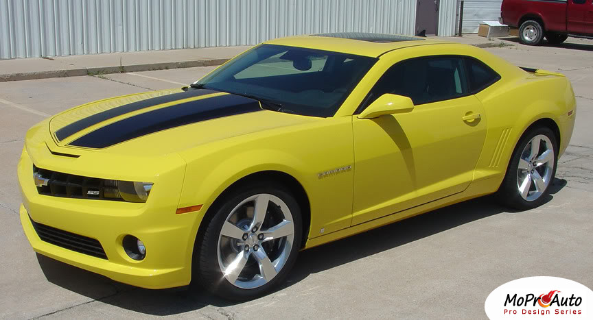 |   | | | R-SPORT - "Exact OEM Replica" Style Racing Stripes : Chevy Camaro Vinyl Graphics Decals Stripes Kit | | Fits Years | | 2010-2013 : All Models | | Size | | Pre-Trimmed - Precision Cut to Fit Sections - Ready to Install | | Contents | | Hood - Trunk - Spoiler Sections as Shown Included | | Description and Features | | DESCRIPTION The MoProAuto Original! This R-SPORT Exact Factory Replica Hood Racing Stripe Kit is designed for the 2010, 2011, 2012, 2013 Chevy Camaro. The vinyl stripe sections included with this vehicle specific vinyl graphic are hood stripes, trunk stripes, and spoiler vinyl graphic decals. Choose the options needed from the menu, including the premium cast vinyl grade. Perfect Fit Every Time : Each vehicle specific MoProAuto Pro Design Series Vinyl Graphic Kit is pre-designed, test fitted, and sold to dealers before being made available to the general public, for a perfect fit every time with little to no trimming needed. Application Fitment : These professional quality MoProAuto Pro Design Series Vinyl Graphic and Stripe Kits fit any Chevy Camaro SS, RS, V6 or four cylinder models from 2010, 2011, 2012, 2013 model years. FEATURES - Superior Quality Vinyl Material from 3M and Avery
