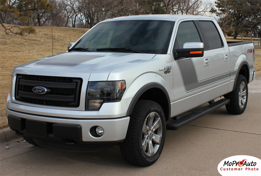 | | Contents | | One Hood Graphic (Choose Model Year) Included | | Description and Features | | DESCRIPTION The MoProAuto Original! Add personality to your Ford Series Truck with a vinyl graphic style! Offering specially designed vinyl stripes including upper door stripe kits, lower rocker panel stripes, hood graphics, and truck body stripe kits for the Ford F-150 models. This F-150 FORCE HOOD SOLID vinyl graphic accent kit is designed for the 2009, 2010, 2011, 2012, 2013, 2014 and 2015, 2016, 2017, 2018, 2019, 2020 Ford F-150. The vinyl stripe sections included with this vehicle specific vinyl graphic are one hood graphic vinyl decal stripes as shown. Choose the options needed from the menu on this page, including the premium cast automotive vinyl grade. Perfect Fit Every Time : Each vehicle specific MoProAuto Pro Design Series Vinyl Graphic Kit is pre-designed, test fitted, and sold to dealers before being made available to the general public, for a perfect fit every time with little to no trimming needed. Application Fitment : These professional quality MoProAuto Pro Design Series Vinyl Graphic and Stripe Kits fit any Ford F-150 models from 2009, 2010, 2011, 2012, 2013, 2014 and 2015, 2016, 2017, 2018, 2019, 2020 model years. FEATURES - Superior Quality Vinyl Material from 3M and Avery