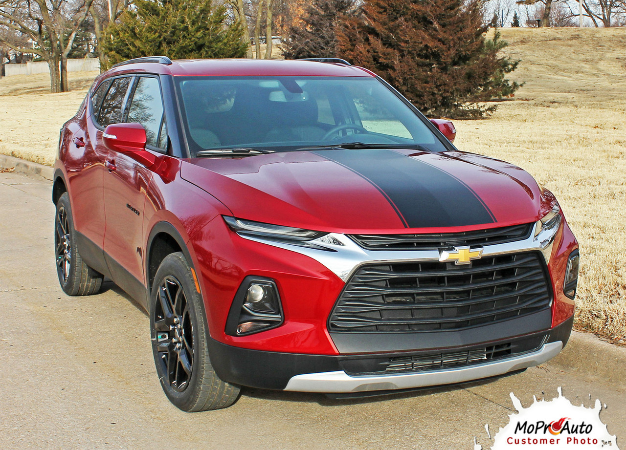 The MoProAuto Original! This is an OEM inspired style hood blackout graphic accent stripe package, designed to fit the 2019, 2020, 2021, 2022, 2023, 2024, 2025, 2026 Chevy Blazer LT, RS, Premier models. The decal sections included with this vehicle specific vinyl graphic are one hood graphic and optional front blackout graphic striping sections. Choose the options needed from the menu, including the premium cast vinyl grade.