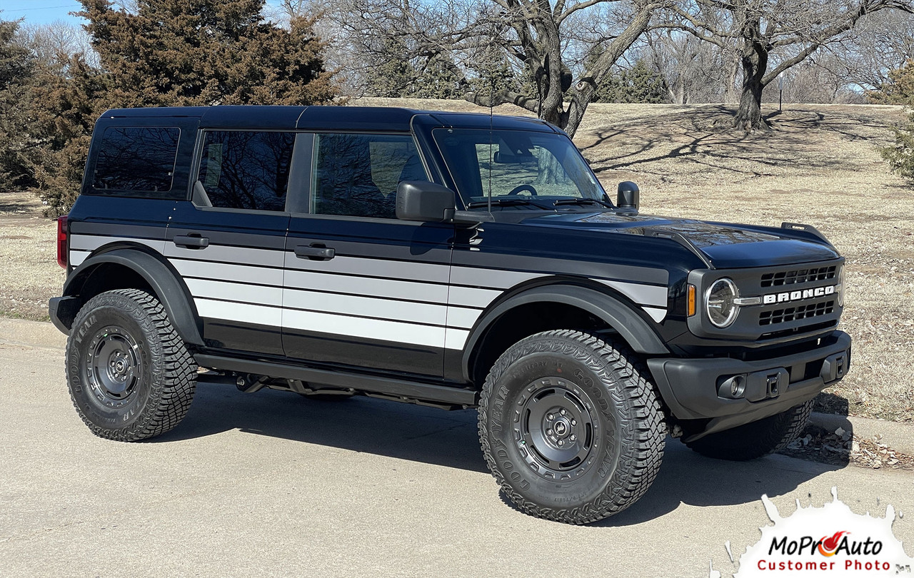 Application Fitment : These professional quality MoProAuto Pro Design Series Vinyl Graphic and Stripe Kits fit any Ford Bronco models from 2021, 2022, 2023, 2024, 2025, 2026 model years.